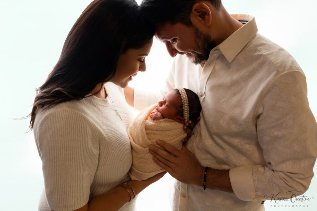 Our newborn photography studio is fully stocked with everything needed for a beautifully styled newborn photo session. We provide hundreds of wraps, blankets, headbands, hats, outfits, backdrops, and a wide variety of newborn photography props to create different looks and setups. There’s no need to shop or overpack — styling for your baby’s session is completely taken care of. Simply bring your baby, yourself, and any meaningful or sentimental items you’d like included in your newborn portraits.