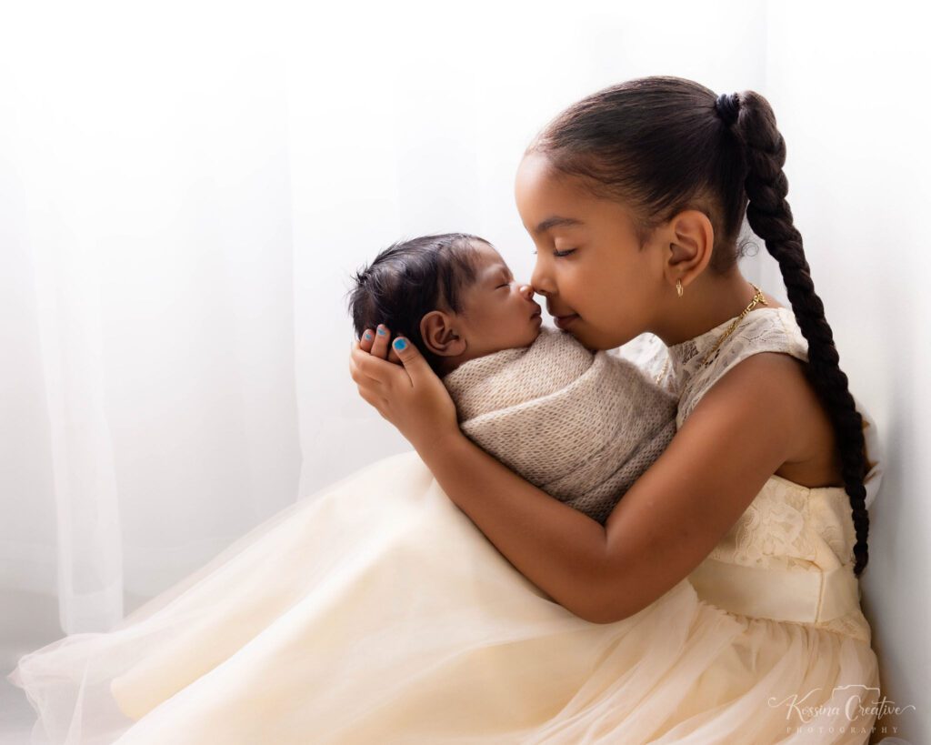 Even if you feel tired or overwhelmed, your presence in the images adds layers of love and emotion that make each photograph truly special. Poses are always simple and natural, designed to highlight your bond without feeling stiff or forced. Whether it’s holding your baby, a gentle forehead touch, or snuggling with siblings, these are the images that will make you smile years from now and remember exactly how tiny your baby once was.