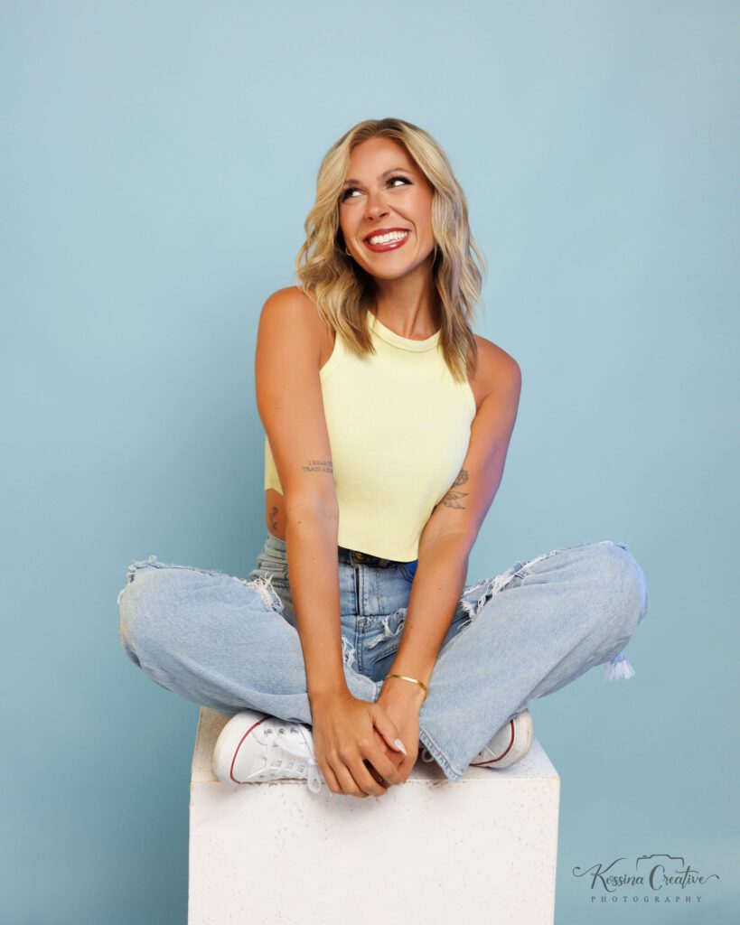 Think about the feeling you want your brand to convey – approachable, refined, bold, creative, calm – and choose clothing that supports that mood. When your outfit aligns with your brand identity, your images feel believable and effortless.