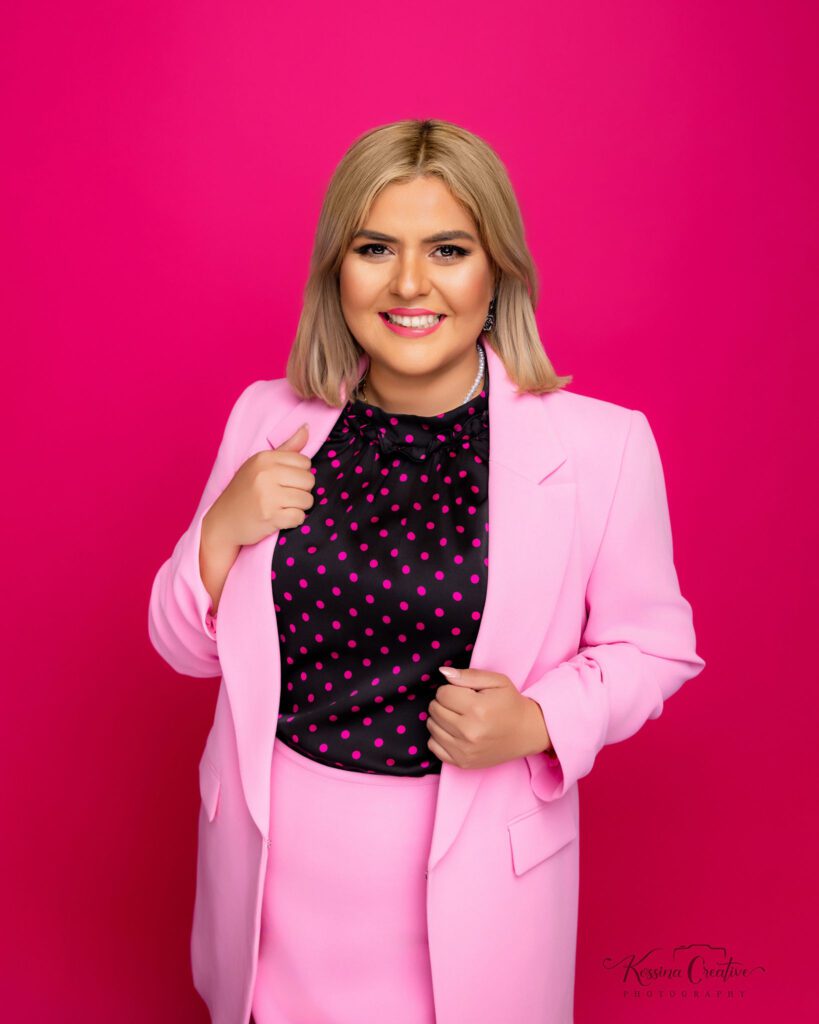 For those in more entrepreneurial roles or creative industries, there’s often more room to show personality through your wardrobe. Bold pops of color, interesting patterns, textured fabrics, or slightly less traditional cuts can all help convey your personal brand and make your headshots feel more authentic and expressive. The key is to choose pieces that still feel polished and intentional, while reflecting the energy and style of your business or industry.